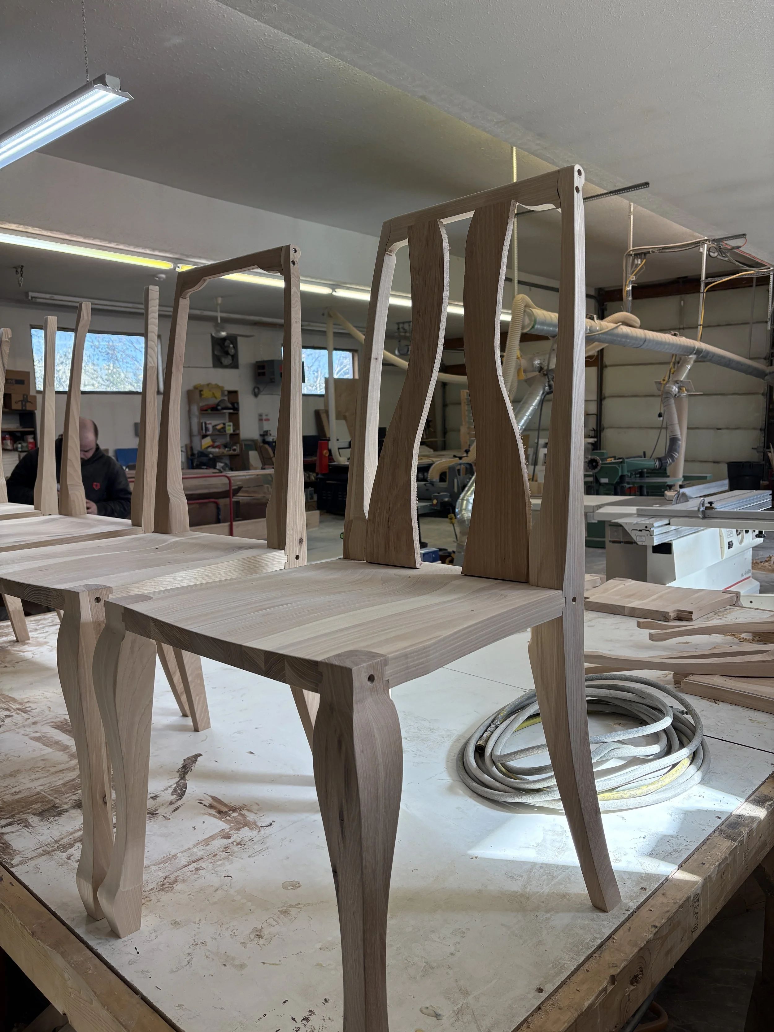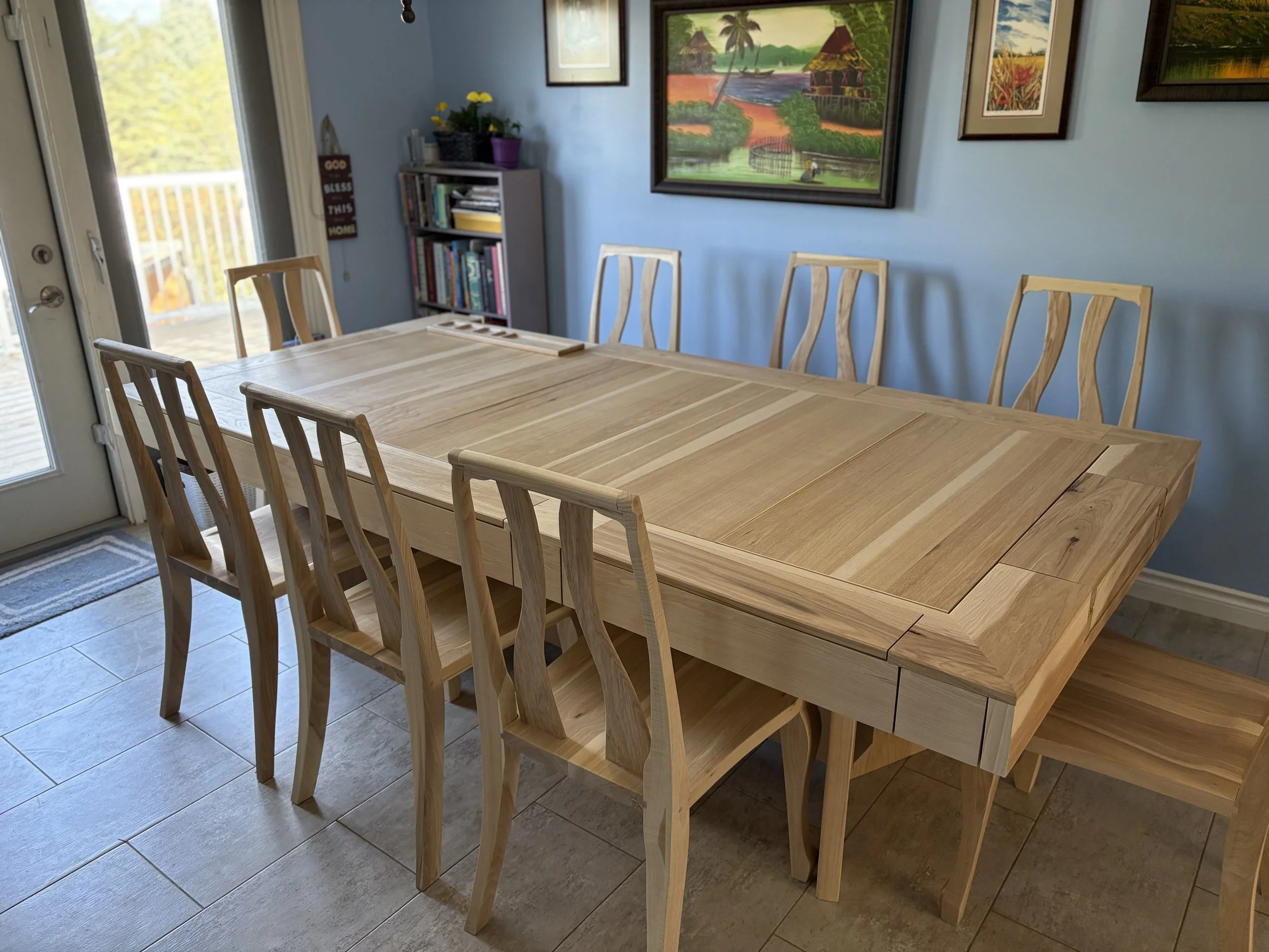 Each chair is meticulously crafted from the same premium hickory, featuring our signature curved back design for comfort during extended gaming sessions or dinner parties. The consistent wood grain and finish create perfect harmony throughout the collection.