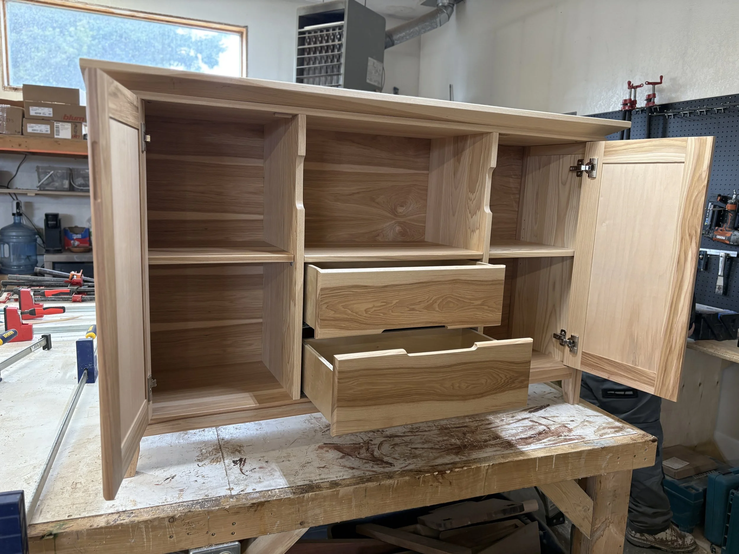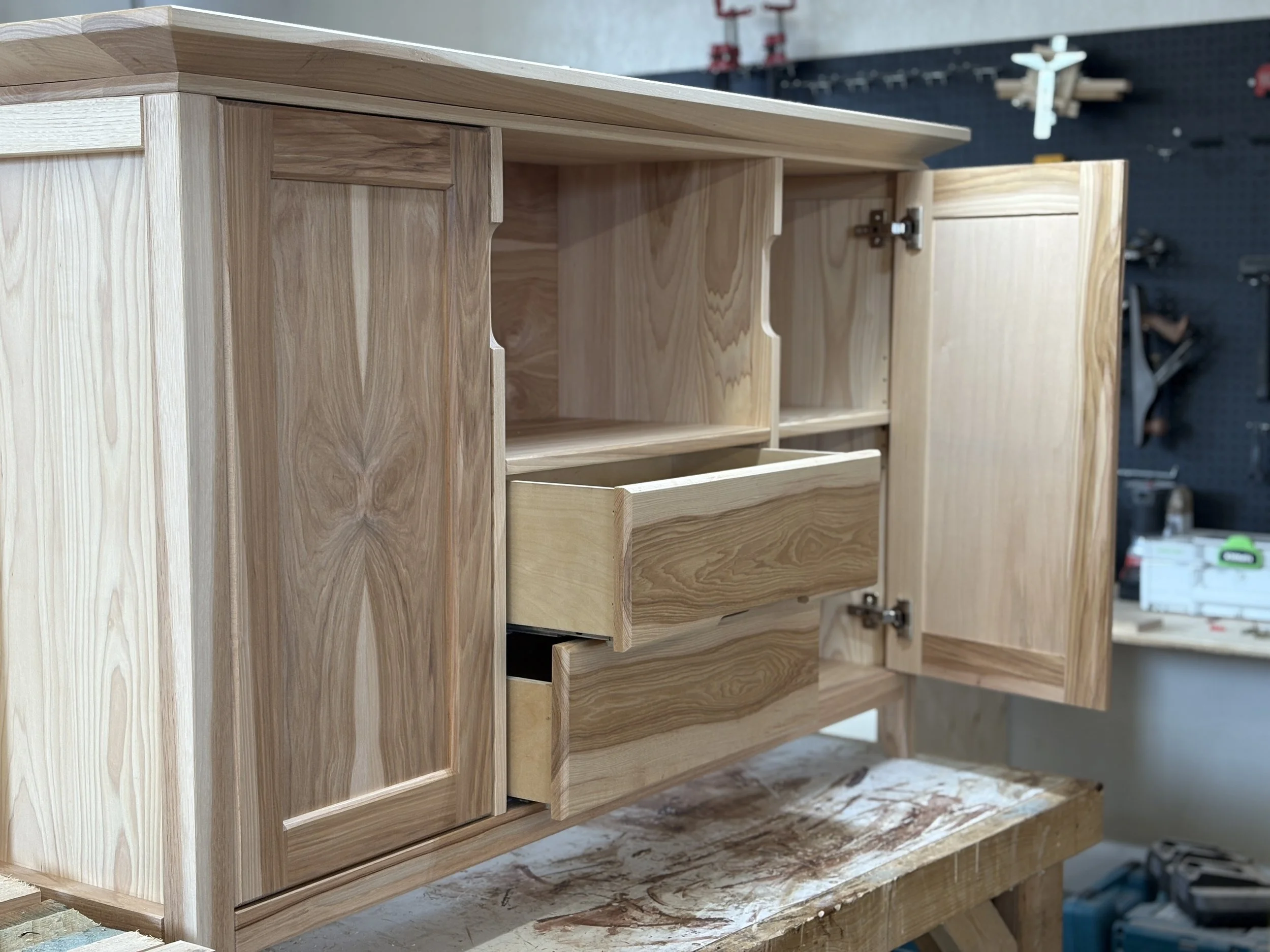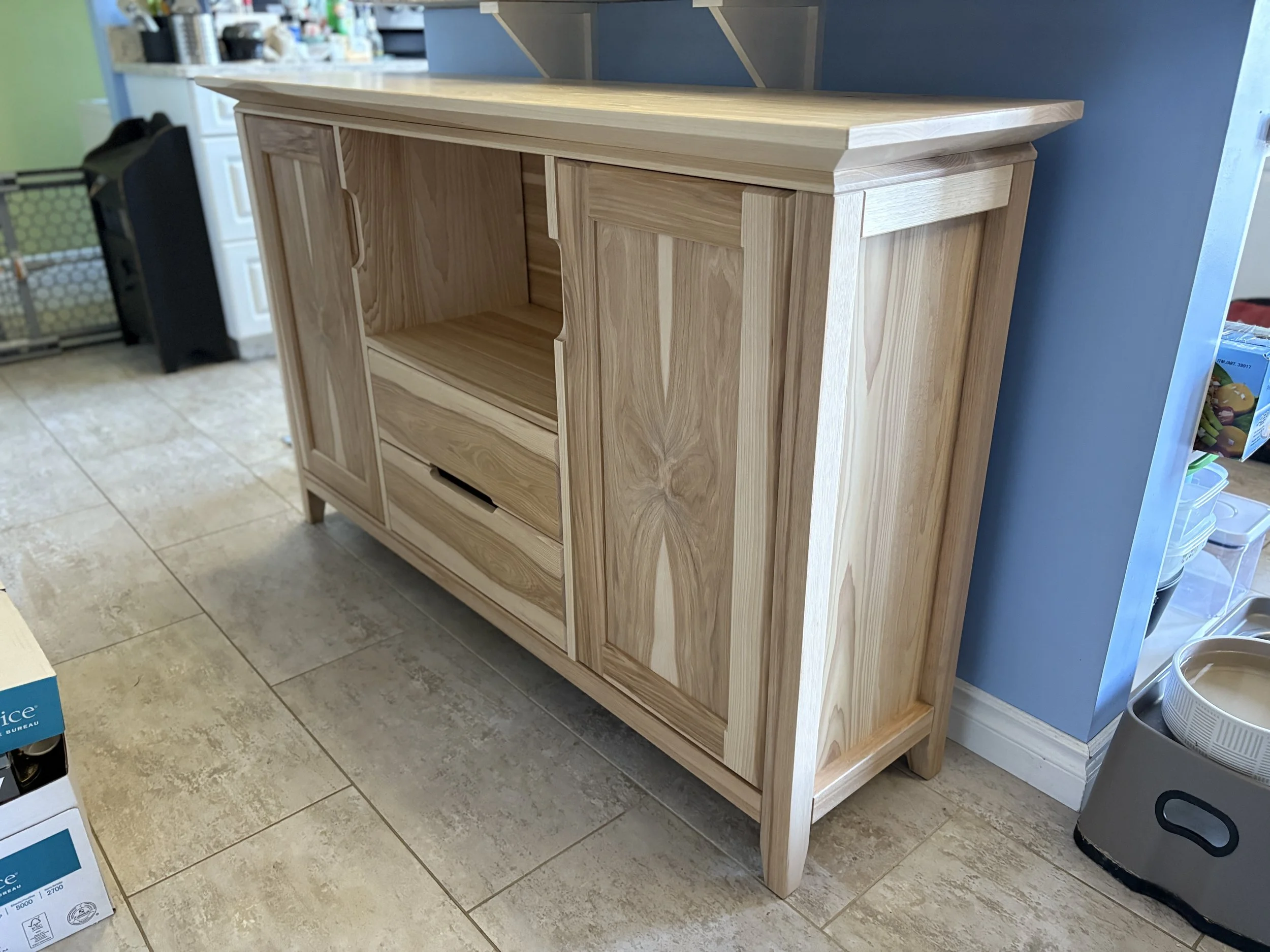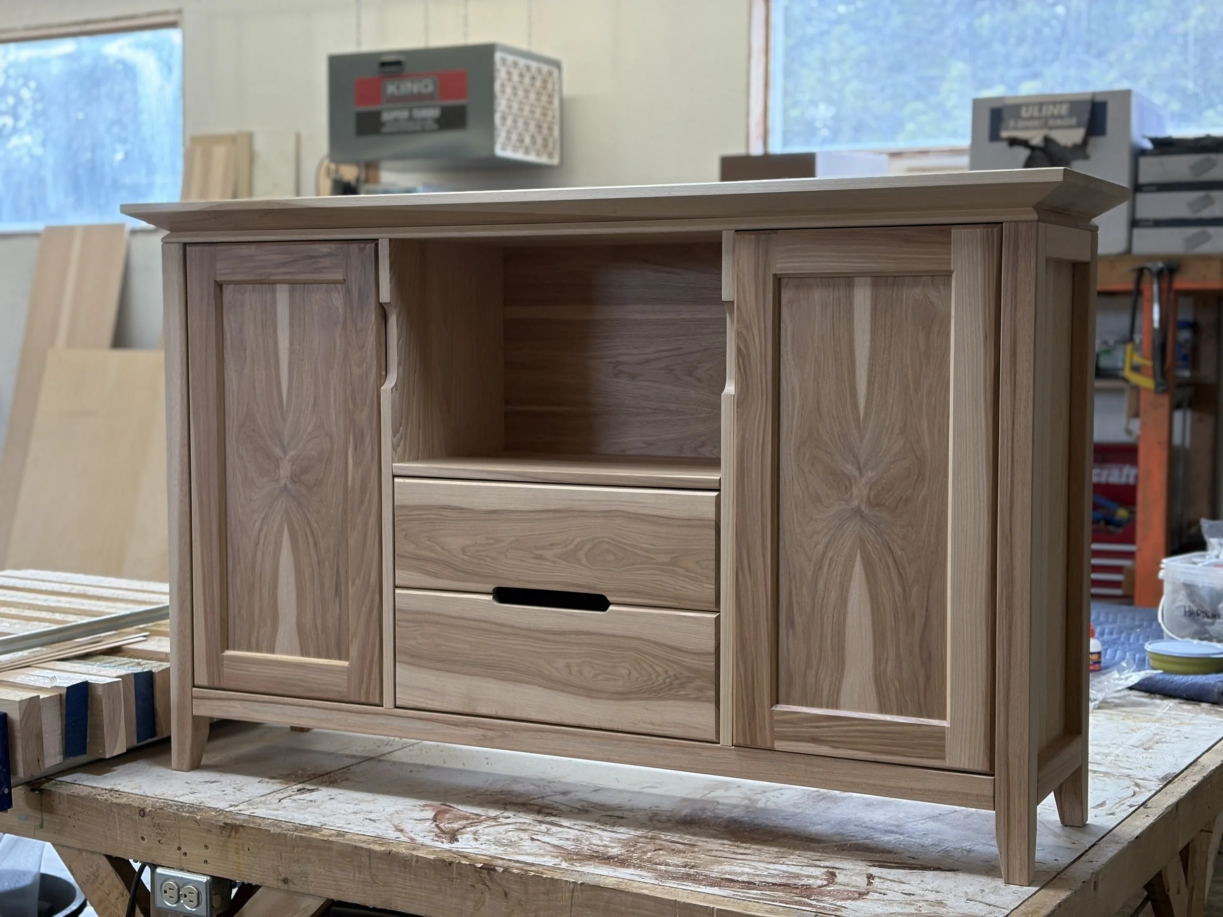 This elegant companion piece features the same hickory construction and craftsmanship, providing sophisticated storage for your finest spirits and glassware. The cabinet's clean lines and quality hardware complement the table's design while offering practical entertaining storage.